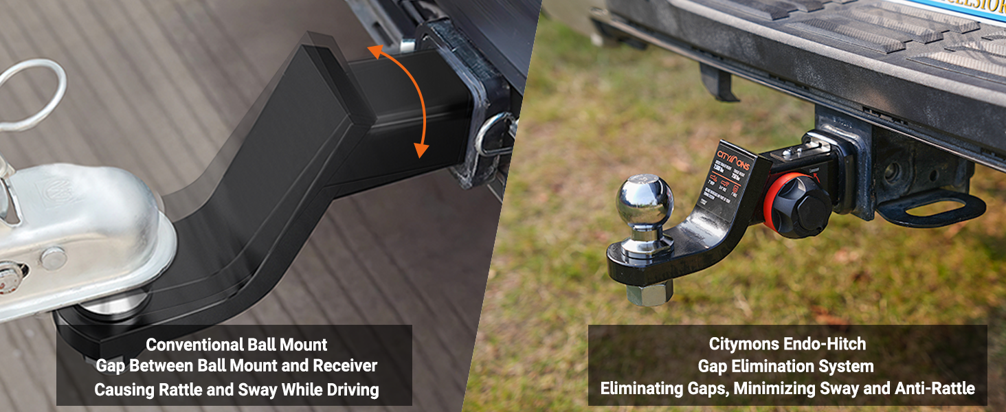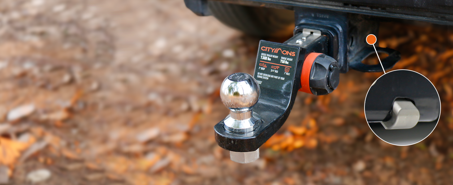 The Citymons ENDO-HITCH's Gap Elimination System integrates a built-in hitch pin that extends to lock the hitch when you rotate the knob. You can use it with confidence.