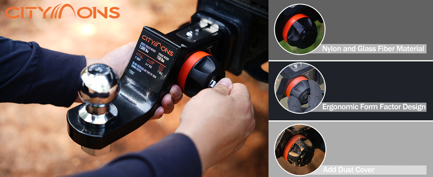 EQUIPPED WITH ANTI-THEFT LOCK/EASY TO USE - The anti-theft lock is integrated into the knob and can be locked directly without other accessories. Easy operation for inserting pins by a one-handed control knob. You do not need to study something for use, just start your towing life after receiving it.
