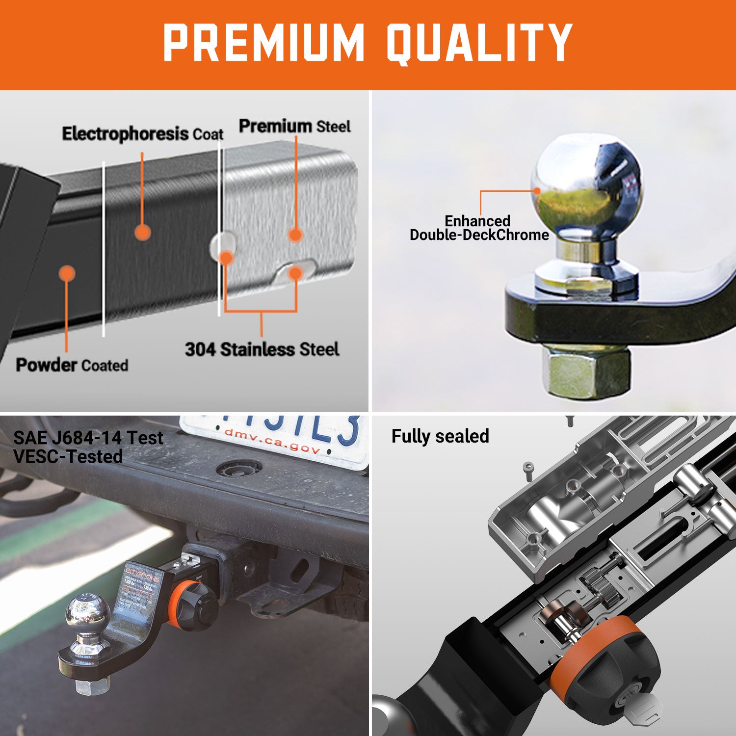 The double chrome-plated hitch ball provides exceptional corrosion resistance. 300N·m Installation for hitch ball, more stable and reliable.