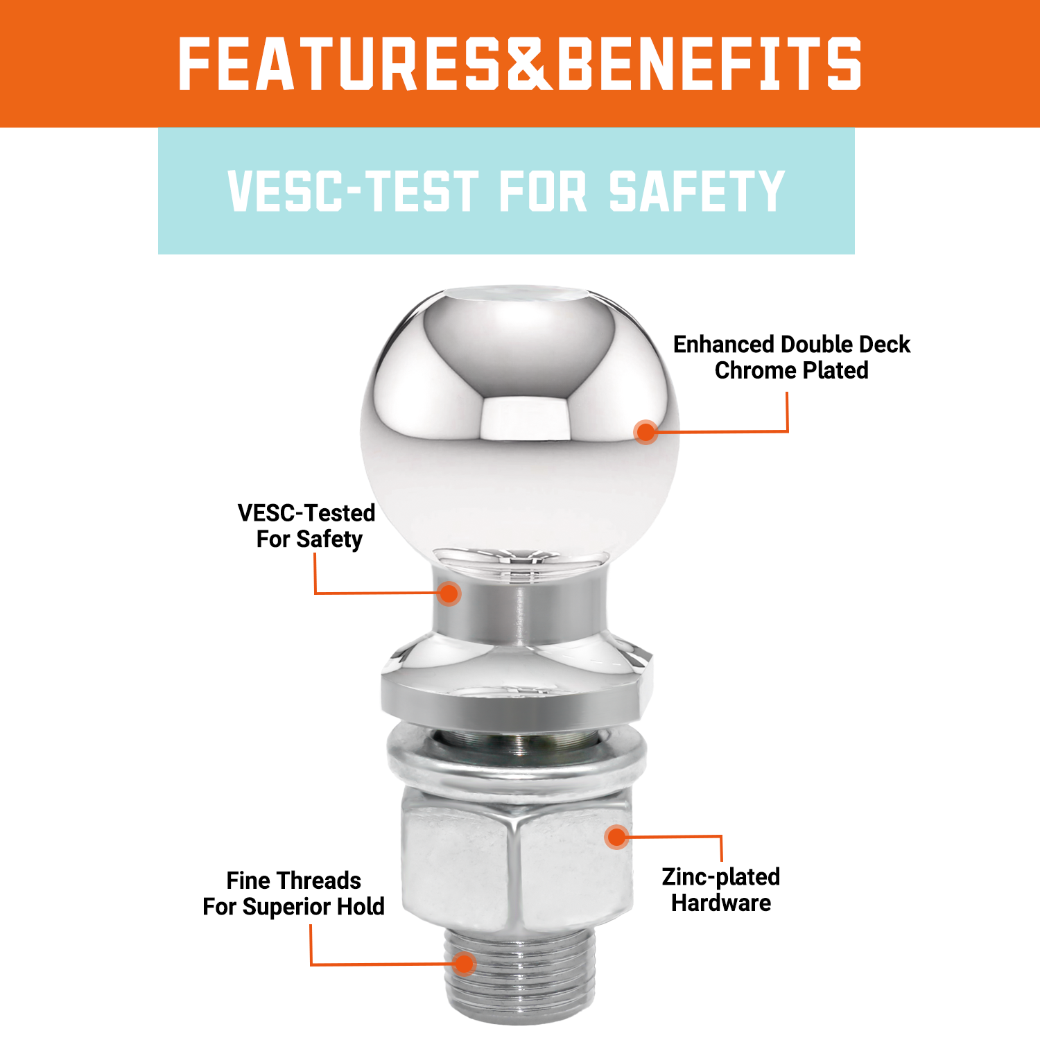 Easy to Install and Use-This trailer hitch ball is equipped with a double-layer chrome finish. The fine threads provide excellent grip, making it easier for you toThe Best Choice for Trailer Hitches use.